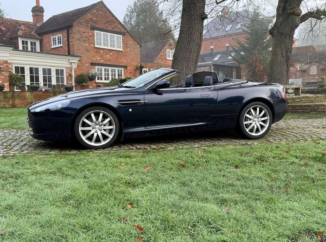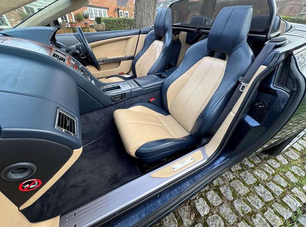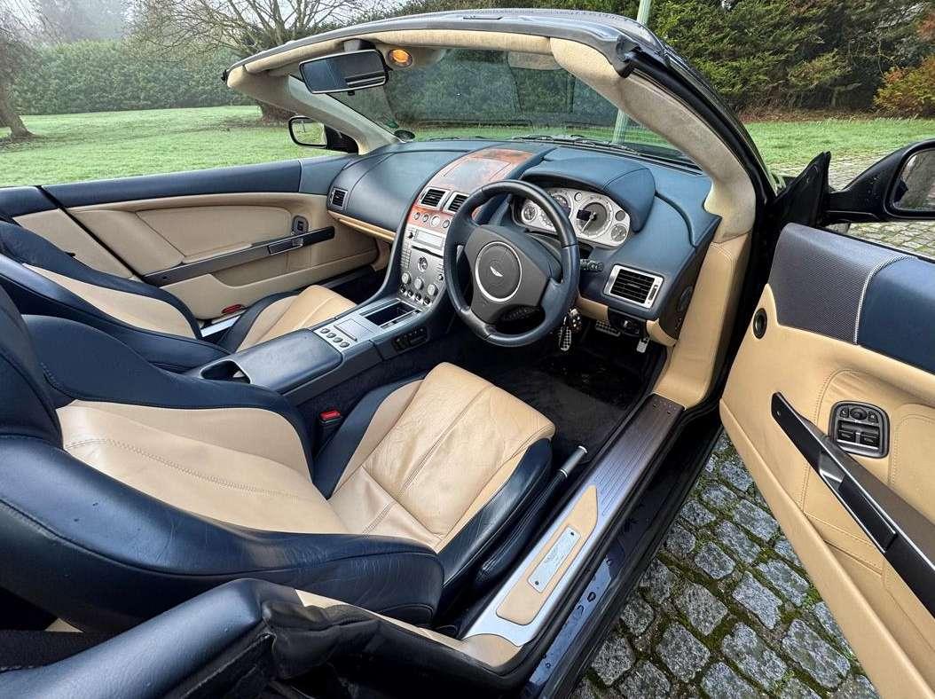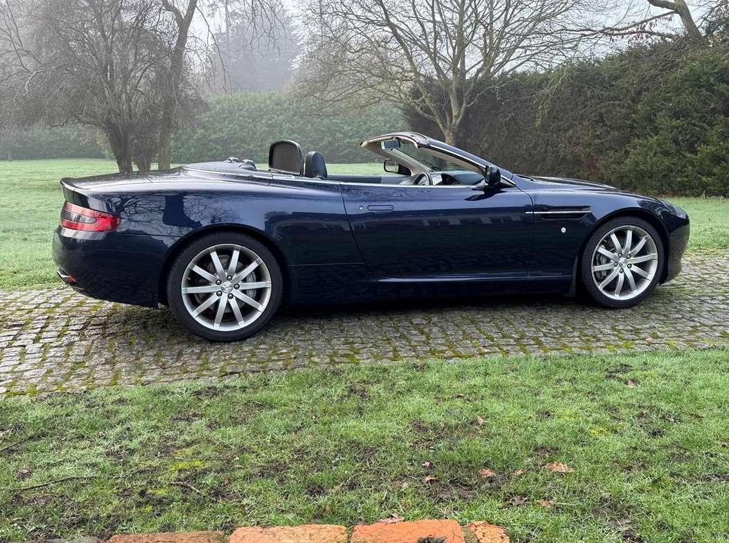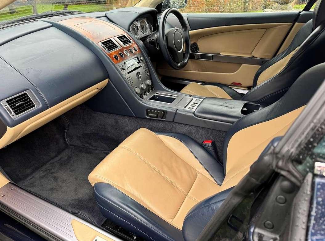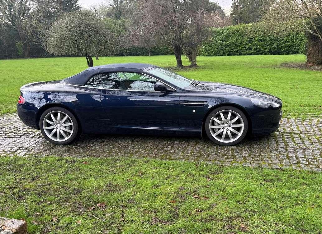 2007 Aston Martin DB9 Volante finished in Oxford Blue with a beautiful and very rare two tone dark blue and light sand beige hide interior and a dark blue mohair soft top. This low mileage motor car has had just two owners from new, the most recent of whom has owned it since it was less than 2 years old. Always annually serviced at HWM Aston Martin in Walton on Thames with 18 service stamps in the service book. It also comes with a complete MOT history and has never failed a test. We believe that the specification includes every extra that was available at the time of purchase and it reads as follows. Climate Control, Satellite navigation and blue tooth connectivity, electric heated memory sports seats with lumbar support, fully adjustable steering column, high spec Hifi system with CD player, multi-spoke alloy wheels with pale grey callipers, traction control, cruise control, a fully retractable electric mohair soft top, a wind deflector and power fold heated mirrors. In the boot of the car is the original Aston Martin umbrella, the original battery conditioner together with the tyre pump. We cannot stress enough just how good this car is to drive, which we deduce is mainly due to the level of regular maintenance, despite there often being only minimal mileage covered between services. Cost new was in the region of £135,000 and hence now incredible value at only £32,950