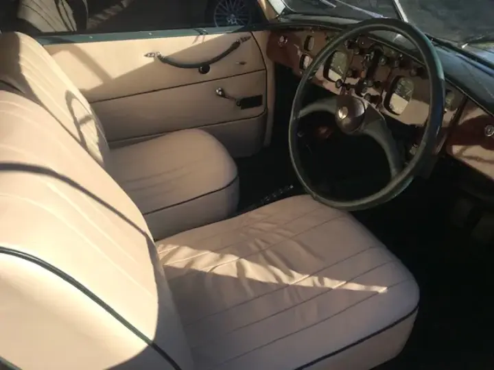 Mechanically, this example retains its original Bristol 100A engine, confirming its matching-numbers status. The odometer displays an indicated mileage of 56,515 miles. The car benefits from a front disc brake conversion, improving braking performance and usability in modern traffic while remaining sympathetic to the car’s character.