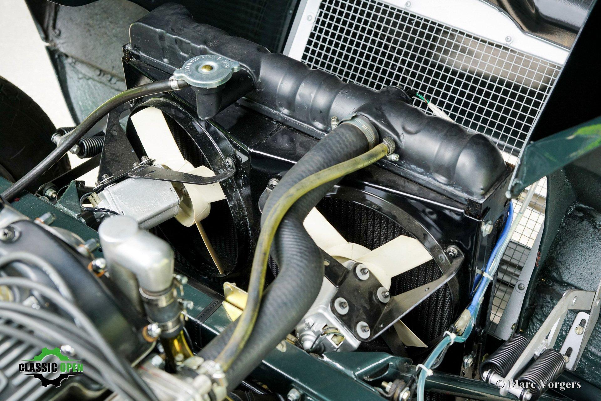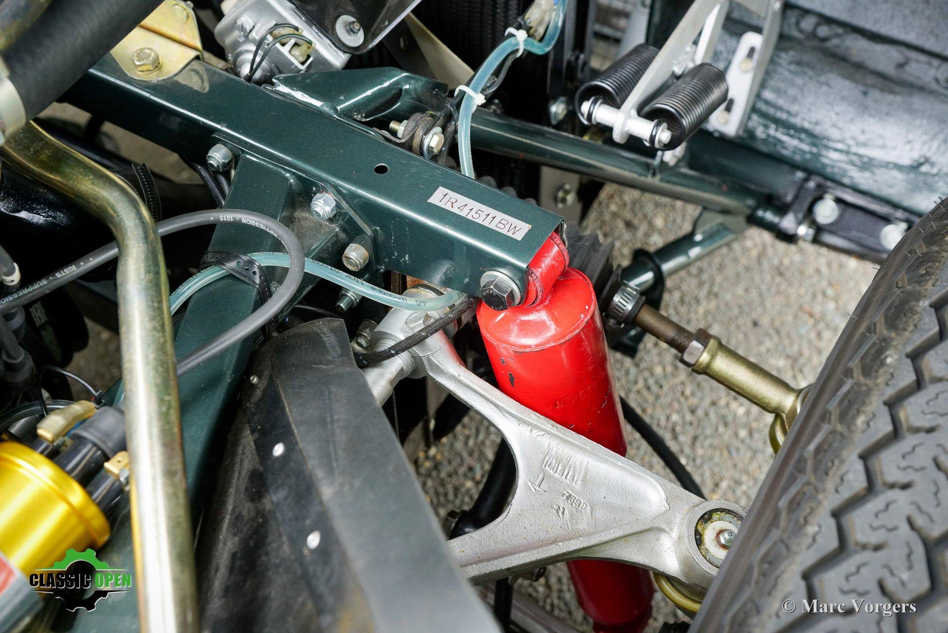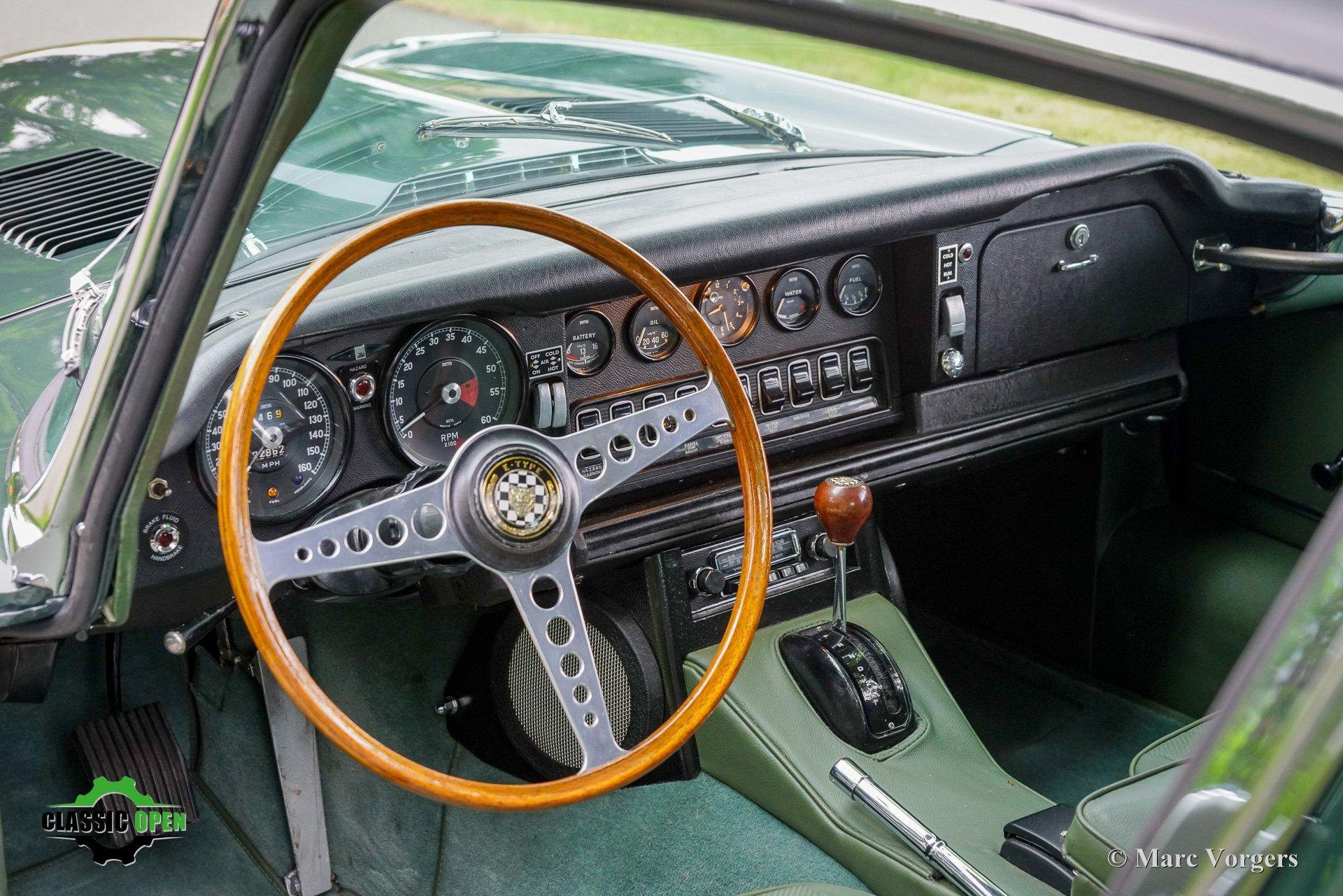 Uitgevoerd in groen metallic (Jaguar Opalescent Silver Green) gecombineerd met een suèdegroen lederen interieur. Deze fantastische Jaguar toont het prachtige originele dashboard met zijn reeks meters en schakelaars, aangevuld met het grote en fraaie originele stuurwiel met houten rand.
