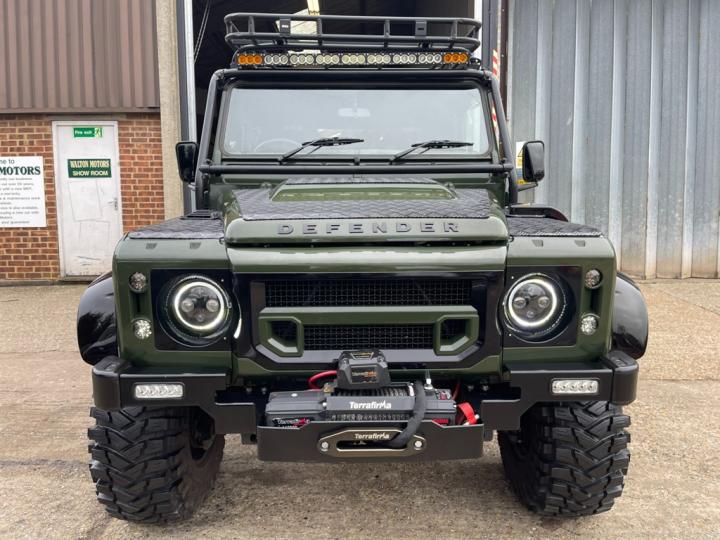 THIS IS NOT YOUR ORDINARY DOUBLE CAB DEFENDER...THIS DEFENDER HAS A RECONDITIONED 4.0 LAND ROVER "ROVER" ENGINE FITTED...SUPPORTED BY AN R380 MANUAL GEARBOX...ONLY 48,000 MILES FROM NEW...RUNNING APPROXIMATELY 250 BRAKE HORSE POWER...THIS DEFENDER HAS JUST HAVE OVER £5000,00 SPENT ON TUNING, NEW CANBUS GAUGE CONTROLLER, NEW DIFF LOCK CONTROL SYSTEM, NEW ALTERNATOR AND A FULL SERIVCE AND M.O.T, THIS TRUCK CAB SPECTRE EDITION IS READY TO DRIVE AWAY TODAY...TENS OF THOUSANDS OF EXTRAS FITTED ON THIS DEFENDER EXTERNALLY...THESE INCLUDE SPECTRE HEAVY DUTY 5MM WINCH BUMPER WITH LED LIGHTS, KAHN X LANDER FRONT GRILL AND LIGHT SURROUNDS, TERRAFIRMA 12,000 LB WINCH - SYNTHETIC ROPE WIRELESS + CABLE REMOTE CONTROL, HALO LED HEADLIGHTS, SMOKED LED LIGHT KIT (WIPAC) FRONT AND REAR, DEFENDER GLOSS BLACK 3D BONNET BADGE, LAND ROVER DEFENDER TERRAFIRMA +6" SUPER WIDE SPECTRE STYLE WHEEL ARCH KIT, GLOSS BLACK WING TOP CHECKER PLATING, GLOSS BLACK PUMA BONNET CHECKER PLATING, XS WING MIRRORS, FIRE AND ICE SIDE STEPS IN ALL BLACK, SAFETY DEVICES DEFENDER 110 "SPECTRE BIG FOOT"EXTERNAL 6 POINT BOLT IN FULL ROLL CAGE - RBL2437SSS, SAFETY DEVICES LAND ROVER DEFENDER 90 110 HARD TOP HEAVY-DUTY ROOF RACK - DA4723, GLOSS BLACK SNOW COWLING, LAND ROVER DEFENDER - 16” X 10” TWEAKED SPECTRE EDITION BEADLOCK STYLE WHEEL X5, MAXXIS TREPADOR 35'S X5, NAS REAR STEP, TOW BAR AND ELECTRICS, SWING AWAY WHEEL CARRIER AND MUCH MORE...LIKE THE EXTERIOR OF THIS DEFENDER THE INTERIOR HAS ALSO HAD THOUSANDS SPENT...THE EXTRAS INCLUDE, MOUNTNEY SPORTS STEERING WHEEL, FRONT EXMOOR TRIM TAILORED CARPET SET, GEARBOX LEATHER GAITERS, CHROME KNOBS, PIONEER DOUBLE DIN HEAD UNIT, SPARCO FRONT SEATS, NEW BLACK CHUBBY BOX, NEW CHROME DOOR SILLS, NEW CHROME PILAR SILLS, HUGE SUBWOOFER SYSTEM FITTED, ALCANTARA HEADLINING, CHROME DOOR HANDELS, NEW LEATHER BLACK WITH WHITE STITCHING DOOR CARD COVERS ON EACH DOOR, SECOND ROW MASAI BLACK WITH WHITE STITCHING SEATS, ELECTRIC FRONT WINDOWS AND MUCH MORE...THIS DEFENDER IS READY TO DRIVE AWAY...TO BE SUPPLIED WITH 12 MONTHS WARRANTY...ALREADY M.O.T'D AND SERVICED..., 12 months warranty, 12 months MOT, Excellent bodywork, Black Full leather interior - Excellent Condition, Tyre condition Excellent, 4x4, Medium wheel-base, 5 seats, Metallic LAND ROVER GREEN, 2 owners, Upgrades - SPECTRE HEAVY DUTY 5MM WINCH BUMPER WITH LED LIGHTS, KAHN X LANDER FRONT GRILL AND LIGHT SURROUNDS, TERRAFIRMA 12,000 LB WINCH - SYNTHETIC ROPE WIRELESS + CABLE REMOTE CONTROL, HALO LED HEADLIGHTS, SMOKED LED LIGHT KIT (WIPAC) FRONT AND REAR, DEFENDER GLOSS BLACK 3D BONNET BADGE, LAND ROVER DEFENDER TERRAFIRMA +6" SUPER WIDE SPECTRE STYLE WHEEL ARCH KIT, GLOSS BLACK WING TOP CHECKER PLATING, GLOSS BLACK PUMA BONNET CHECKER PLATING, XS WING MIRRORS, FIRE AND ICE SIDE STEPS IN ALL BLACK, SAFETY DEVICES DEFENDER 110 "SPECTRE BIG FOOT"EXTERNAL 6 POINT BOLT IN FULL ROLL CAGE - RBL2437SSS, FETY DEVICES LAND ROVER DEFENDER 90 110 HARD TOP HEAVY-DUTY ROOF RACK - DA4723, GLOSS BLACK SNOW COWLING, LAND ROVER DEFENDER - 16” X 10” TWEAKED SPECTRE EDITION BEADLOCK STYLE WHEEL X5, MAXXIS TREPADOR 35'S X5, NAS REAR STEP, TOW BAR AND ELECTRICS, SWING AWAY WHEEL CARRIER, MOUNTNEY SPORTS STEERING WHEEL, FRONT EXMOOR TRIM TAILORED CARPET SET, GEARBOX LEATHER GAITERS, CHROME KNOBS, PIONEER DOUBLE DIN HEAD UNIT, SPARCO FRONT SEATS, NEW BLACK CHUBBY BOX, NEW CHROME DOOR SILLS, NEW CHROME PILAR SILLS, HUGE SUBWOOFER SYSTEM FITTED, ALCANTARA HEADLINING, CHROME DOOR HANDELS, NEW LEATHER BLACK WITH WHITE STITCHING DOOR CARD COVERS ON EACH DOOR, SECOND ROW MASAI BLACK WITH WHITE STITCHING SEATS, ELECTRIC FRONT WINDOWS, Standard Features - Alarm System - Perimetric and Volumetric with Immobiliser and Battery Back Up Sounder 433mhz, Cupholders x2, Power Assisted Steering, Radio Preparation - inc. Aerial No Speakers, Rubber Floor Trim, Seats - 3 Seat Bench in Rear, Seats - 5, Single Passenger Seat, Windows - Tinted Front and Side, Heated indoor showroom. Nationwide delivery can be arranged. Finance Available.,