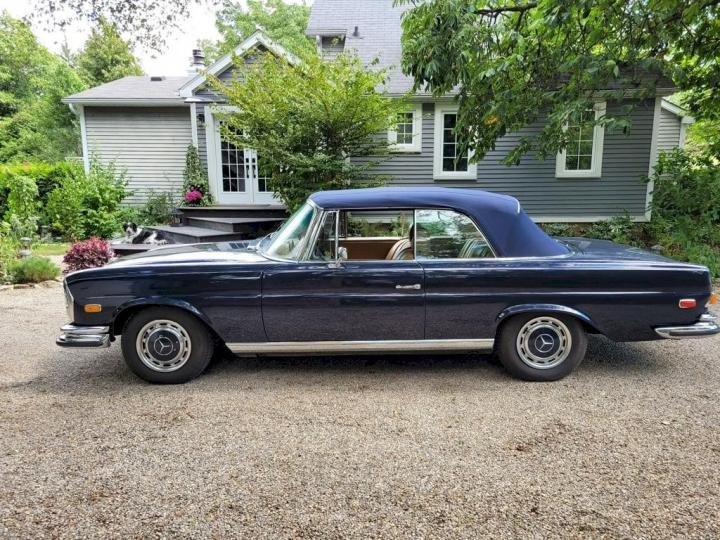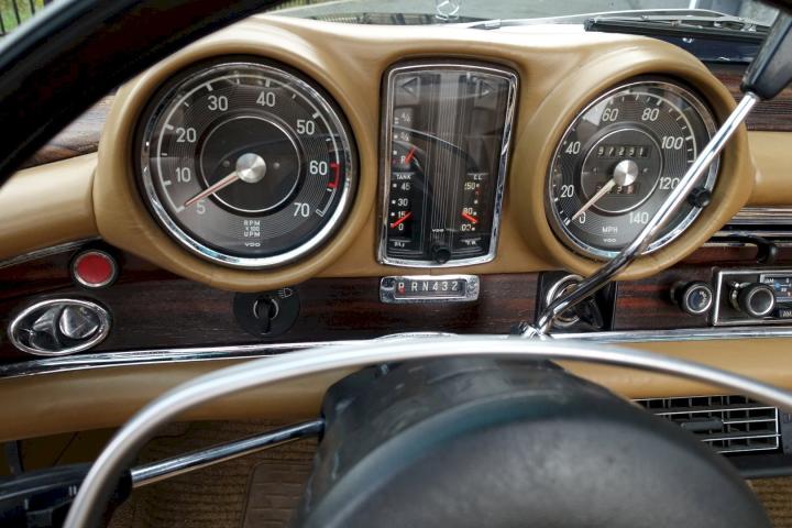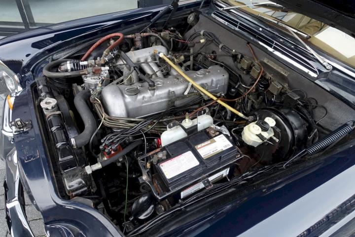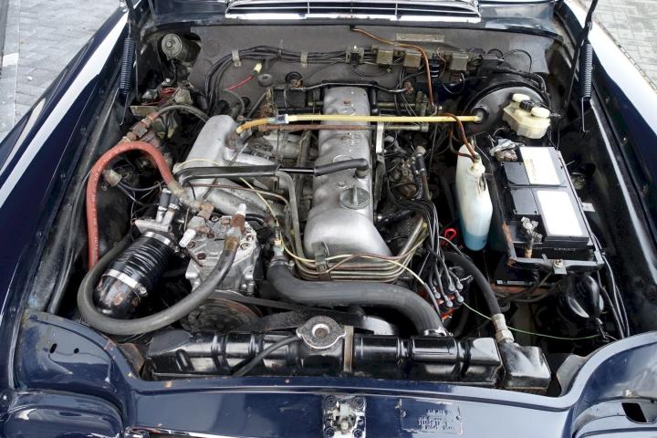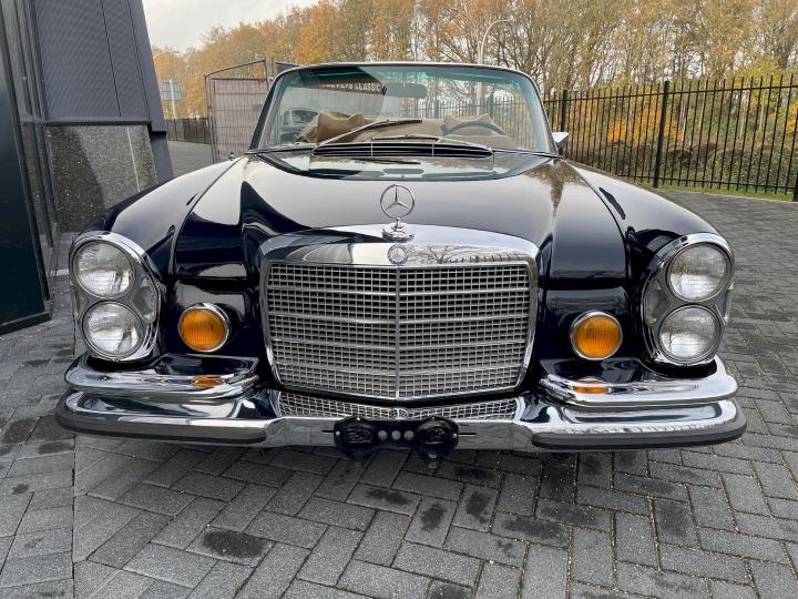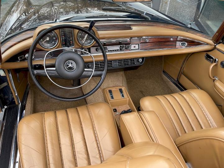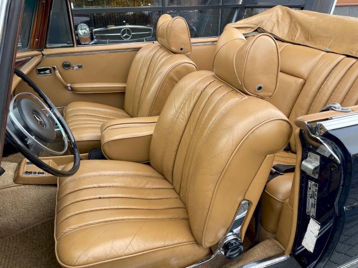 Slechts 390 exemplaren werden er gemaakt van de Lage grille 280SE Cabriolet in 1970-1971, deze heeft Matching nummers en is in de kleurstelling zoals ie de fabriek verlaten heeft, Donkerblauw 904G met een Cognac bruin leder interieur 250.