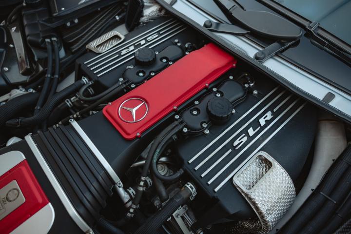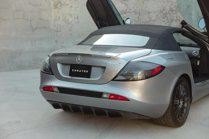 Performance upgrades over the standard SLR Roadster include a lowered suspension, larger carbon-ceramic brakes, stiffer damping, a carbon-fiber front splitter, and unique 19-inch wheels. Top speed is rated at 208 mph, with 0–60 mph in just 3.7 seconds.