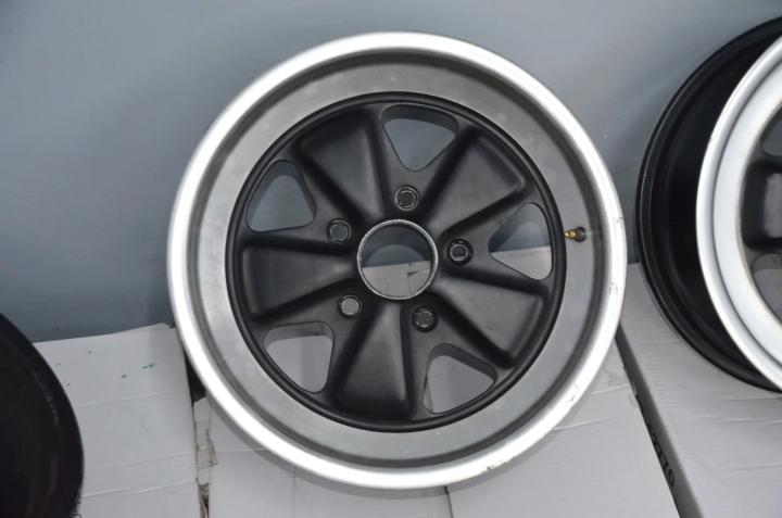 These 16 inch Fuchs Alloys are in good condition. No structural damage, true and round.