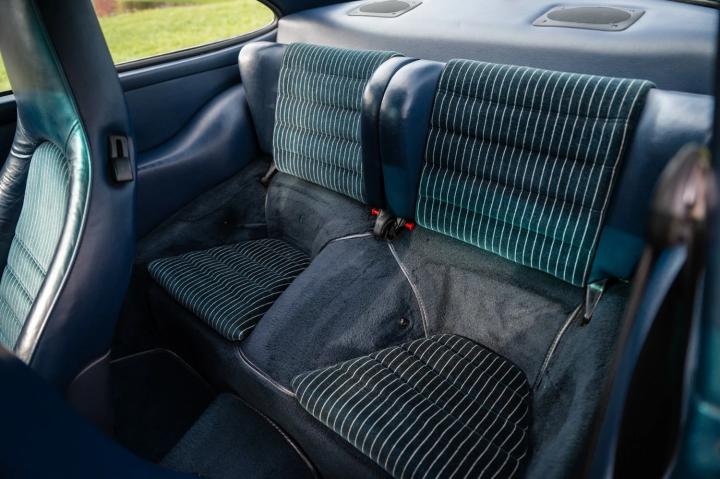 It is finished in Guards Red and has a blue half leather pinstripe interior.