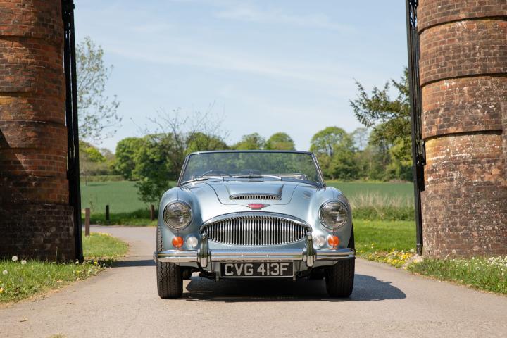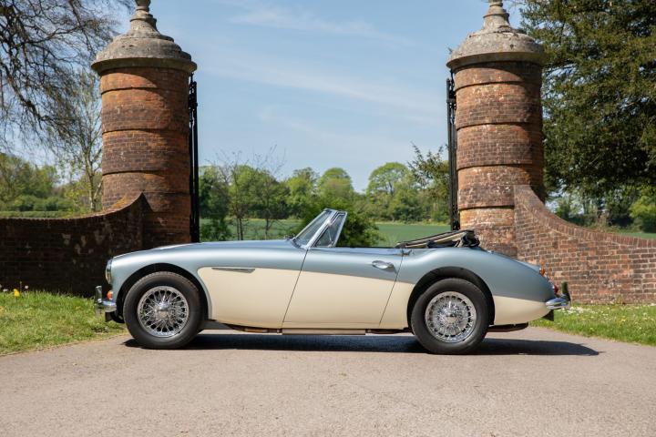 Most pleasingly, the fresh Healey Blue Metallic paint is the original factory colour for this example, faithfully reproduced at a great quality that is far superior to the 1967 factory finish. The engine is the original, as is the gearbox and rear axle. All body panels appear to be original and the car was rebuilt on its original chassis. The car sit on 60 spoke chrome wire wheel with Vredestein tyres new at the time of restoration.