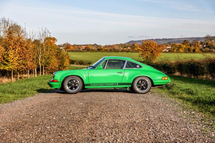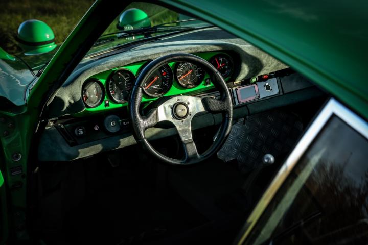 Works included removing the engine, gearbox and stripping the whole body, before replacing many of the panels with lightweight Kevlar or carbon panels before a respray in Viper Green. The original engine was replaced with a fully rebuilt 3.6 litre 964 unit running Jenvey throttle bodies and an OMEX electronic fuel injection system. This was mated to a close ratio quick shift G50 gearbox with a ZF limited slip differential along with upgraded brakes and suspension system. Other highlights include genuine 16” Fuchs alloys, Bonnet mounted driving lights, Bespoke exhaust system, FIA approved Heigo roll cage, Schruth harnesses, Heated windscreen. A period lightweight interior was installed which included Bielstein bucket seats, Alcantara trim and Momo steering wheel.