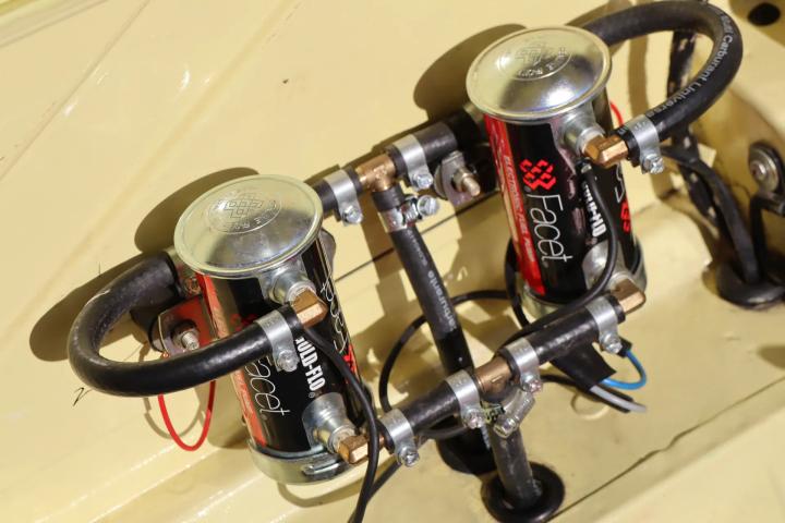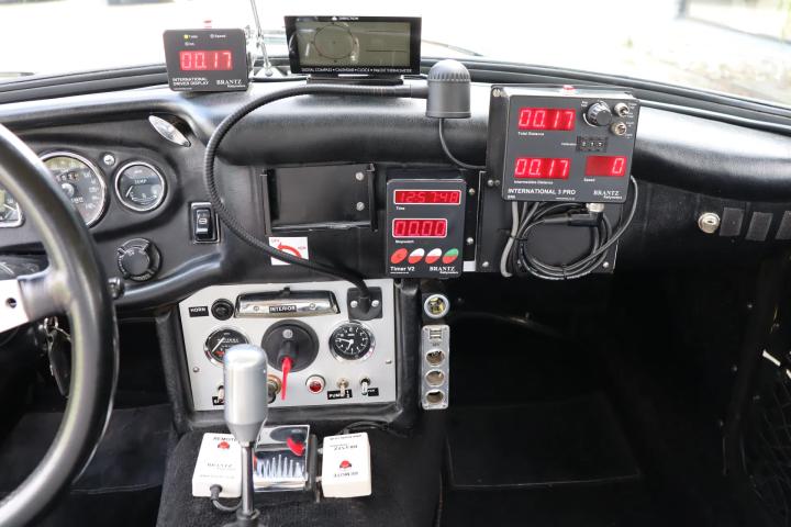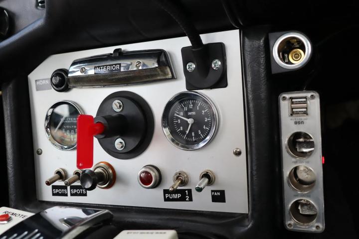 The black interior is currently fitted with rally seats. The original leatherette seats are included with the car. The upholstery is in good condition. A sporty leather-covered Moto-Lita steering wheel and aluminium gear stick are fitted. In addition, extra gauges have been fitted for, for example, battery voltage and trip meters. Other upgrades include a dashboard-operated horn, USB ports, 12-volt connections, a mass switch and a digital compass. The boot contains tools, a spare wheel and a fire extinguisher.