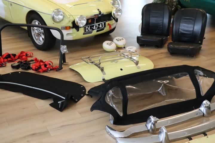 A pleasure to drive: the original 2.9-litre 6-cylinder in-line engine produces a beautiful sound and is controlled by the manual gearbox, which was overhauled about 4 years ago. The overdrive provides a pleasant “5th gear”. The engine does not consume oil, is well tuned and does not suffer from heat. Many technical upgrades have been carried out, including: Koni shock absorbers, special brakes, two electric fuel pumps, Weber carburettors, a stainless steel exhaust, a spaghetti manifold, a special intake manifold, electric ignition and a new type of alternator. The 15-inch rims have good Goodyear all-season tyres. The car drives very well, so whether it is used for rallies, touring or holidays, this MG is ideally suited.