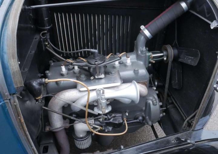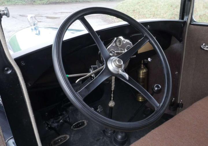 Lovely in blue and black, excellent body, paint and chrome, very tidy engine bay, lovely refurbished cloth interior, rubber floor mat, starts easily, stops and drives very well. Was imported from the US in 2017 where it belonged to the ex-resident of the AACA (Antique Automobile Club of America), restored in USA including engine re-build, radiator, hoses and battery all look newish, good tyres, flashing indicators, recent ignition components and rebuilt petrol gauge. Seen service with a film hire company, comes with V5, Instruction Book, wiring diagram, vintage petrol can, brass fire extinguisher and a few tools. Great fun.
