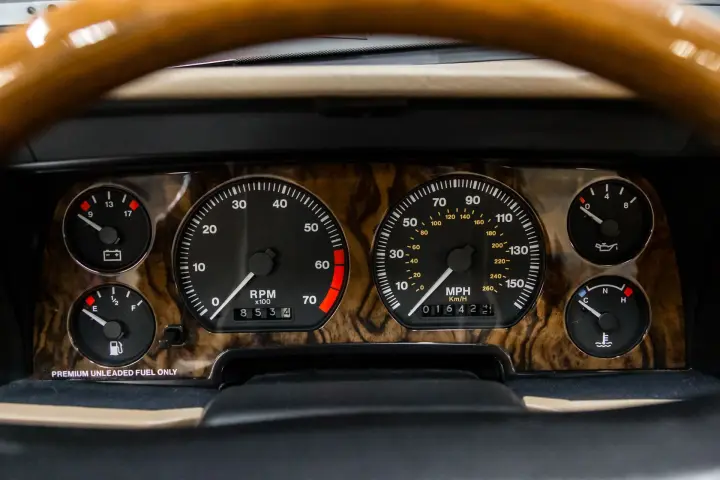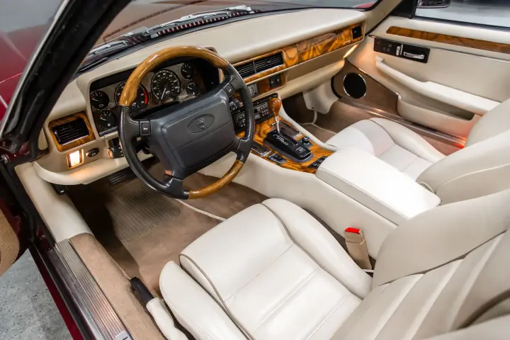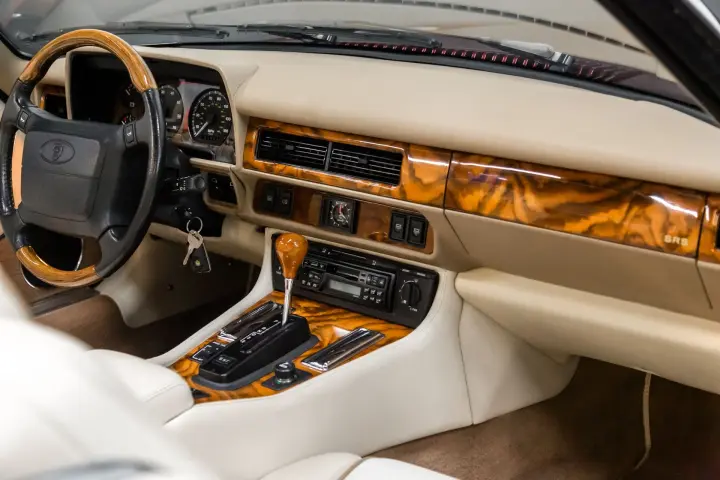 This outstanding example of a 16621-mile Celebration Edition 4.0 6 cyl XJS Convertible is PRETTIER in person than the pictures reflect. The paint is original and without flaw. This car has been garaged kept (obviously) and well preserved. Every component reflects that of a "new" car, crisp, sharp, and clean,as one would expect a garaged, kept 16621-mile car to be. The car has had annual services and has been periodically driven so it does everything correctly.