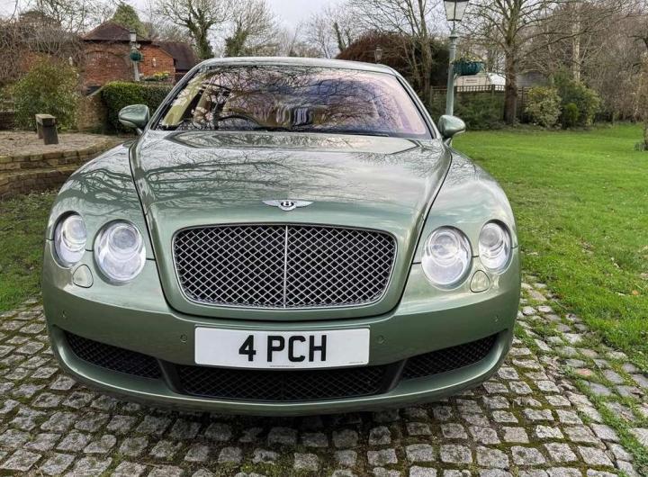 This exceptionally low mileage (8,986 miles) 2007 Bentley Continental Flying Spur was purchased from new by the Titled owner in August 2007 and has been used soleley for special occasions. This solitary owner has been a serious collector and car enthusiast for many years and the car has formed part of an interesting and diverse collection. Purchased new from Jack Barclay at a cost of £136,720, the car is finished in a special order colour of Alpine green with a stunning unmarked interior finshed in Magnolia hide with Spruce Dash top, best quality Wilton carpet throughout and Burr Walnut veneered rear picnic tables. The specification further includes a full length rear centre console at a cost of over £4,000, Satelite navigation, TV facility, an electric glass sun roof, 20" chome wheels, a Nav Trac security system and everything else one would expect in a car of this superior quality. It comes supplied with its original Bentley service book with 14 service stamps and a chronologically kept history file and15 mot certificates showing the very gradual progression of the recorded mileage. Unrepeatable value at £22,950