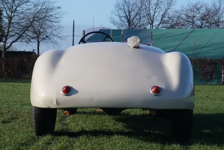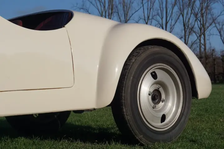 The chassis is in rust-free condition. And will need very little to no attention. The body will need some attention and a respray to have it shiny and smooth again. Or… take care of the mechanical aspect and leave the car as much original as possible. This 1500 Barchetta is powered by its, 1500cc, 6-cylinder in-line engine with the matching 4-speed gearbox. It is quite a vivid car to drive with its lightweight body/shape. To feed the engine, a set of 3 solex carburetors has been placed. In order to stop the little car, you will find drum brakes in the front and rear set behind some nice alloy wheels with Michelin tires on top of it.