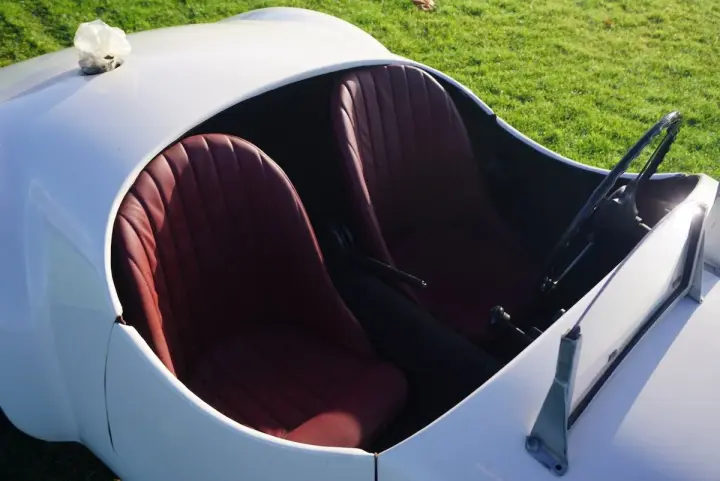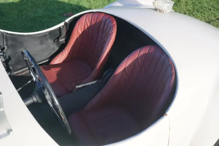 To drive the car, the driver and co-driver will sit tight in the bucket seat, who are rapped in burgundy leatherette. Sitting behind the wheel, you overlook the neat alloy dashboard that accepts just a few dials and operating knobs. Sober but stylish! It is a perfect cruiser car to enjoy, or even better, it would be great to enter some historical rallies as the power-to-weight ratio is just great. It might even be considered to enter great rallies such as the Mille Miglia or others.