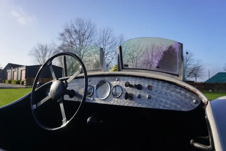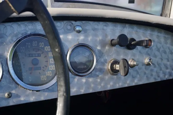 Pour conduire la voiture, le conducteur et le copilote s'installent confortablement dans les sièges baquets en similicuir bordeaux. Assis derrière le volant, on surplombe le tableau de bord en alliage soigné qui n'accueille que quelques cadrans et boutons de commande. Sobre mais élégant ! C'est une parfaite voiture de croisière à apprécier, ou mieux encore, elle serait parfaite pour participer à des rallyes historiques car le rapport poids/puissance est tout simplement excellent. Elle pourrait même être envisagée pour participer à de grands rallyes tels que les Mille Miglia ou d'autres.