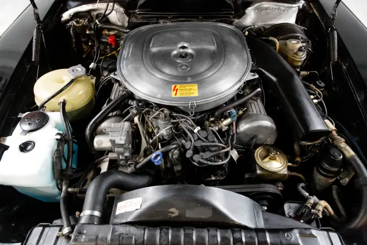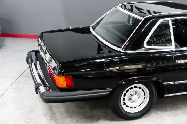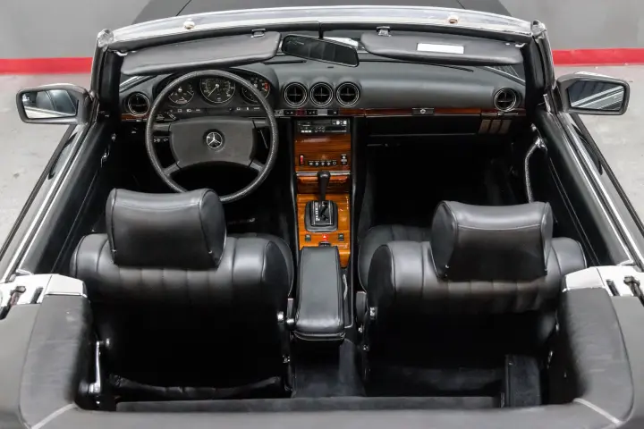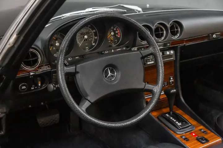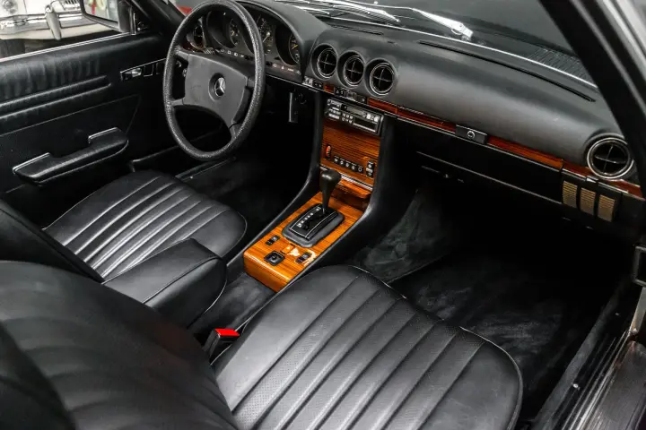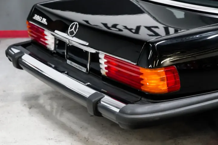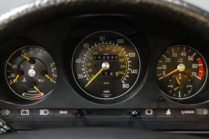 This 53331 miles 380SL shows no indication of rust or accident history. The paint ,body panels are as straight and crisp as the pictures reflect .The interior looks fresh with full bodied seats ,no cracks on dash ,straight door cards, nice carpets and crisp gauges.