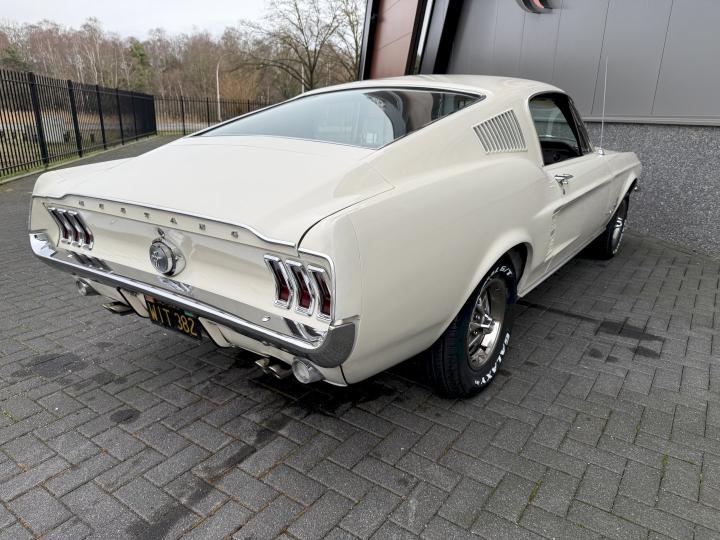 Just in stock 1967 Fastback in original color wimbeldon white this one was build on 27 dezember 1966 and early 67 build in San jose California this black plate car has a super nice rust free body the floors are still in full original condition the red oxide rust protection with the white over spray in super condition this is one of the better cars to find the original double exhausted was renewed incl the Gt tips to give it a luxury look
