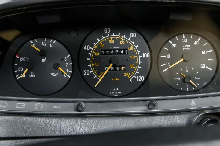 This lovely,, rare 300CD Turbo Diesel car is as nice in person as these 99 pictures reflect. The paint is outstanding with straight body panels and no indication of accident history rust history. The interior is as nice and crisp as shown with a crack free dash, crisp ,clean gauges that work as designed. The seats have nice original covering with full pleats .Headliner is good, all windows work properly. The Hvac system is in good order with cold A/C and warm heat. Tires are deep in tread.