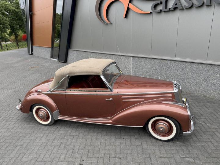 Betreft een zeer origineel exemplaar deze 220A Cabriolet uit 1952, een unieke schuurvondst, op dit moment proberen we de motor weer gangbaar te maken, voor iemand die wil restaureren het ultieme, aan deze auto is nooit aan geprutst, uitstekende body en 100% compleet voorzien van de fabrieks Datacard, leuk detail is dat als kleur geen code werd vermeld en als omschrijving "grau vor-lackiert" wat zou kunnen duiden dat de kleur uiteindelijk door de eerste eigenaar na aflevering werd bepaald.