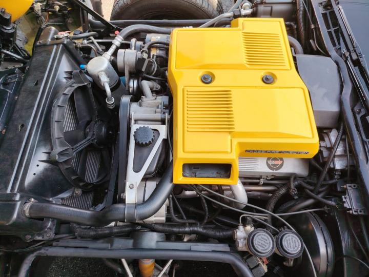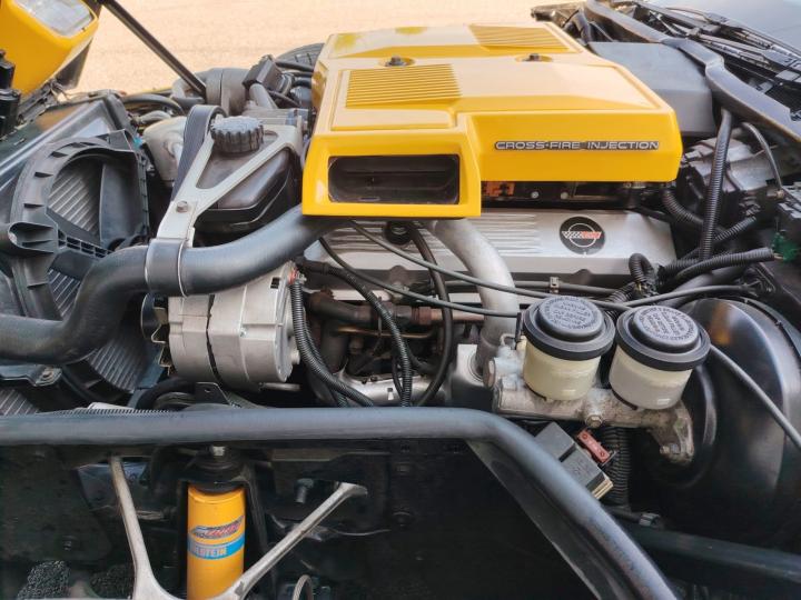 The 1984 Corvette C4 Crossfire is powered by the 5.7L V8 (L83) engine with Cross-Fire Injection, an innovative system for the time featuring dual throttle bodies.