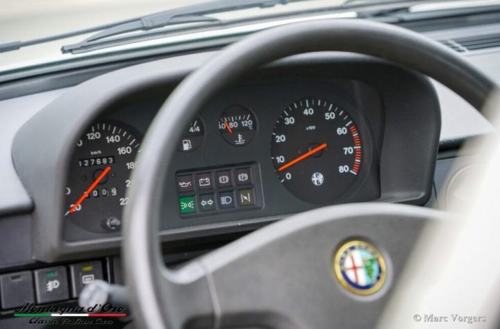 De auto is nog voorzien van een Italiaans kenteken. Vanaf nieuw heeft deze Alfa 33 Sport Wagon slechts 127.684 kilometer gereden. De automobiel verkeert in een excellente originele conditie! Alleen in het interieur zijn op het tapijt en op de hemelbekleding enkele sporen van gebruik te vinden.