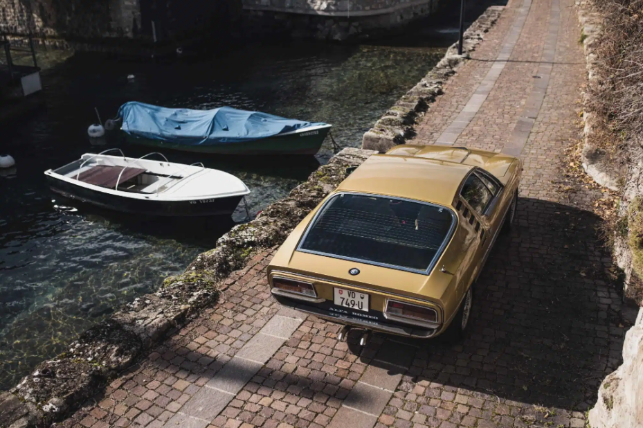 The Alfa Romeo Montreal’s design is an artful blend of Italian flair and avant-garde aesthetics. Penned by the renowned Marcello Gandini at Bertone, the Montreal boasts distinctive features that set it apart from its contemporaries. Its most striking feature is undoubtedly the iconic slatted “coda tronca” (chopped tail) rear window, which not only serves as a design statement but also aids rearward visibility. The retractable headlamps and sculpted front grille add to its distinctive character.