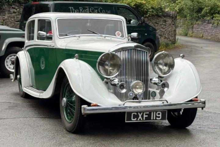 A very attractive Derby Bentley, well-proportioned and with some appealing touches, such as ‘trouser crease’ wings, chrome waistline mouldings, Marchal headlights (as per original spec), long trumpet Lucas horns, and – very unusually – a chrome plated dashboard. Finished in light grey and green, harmonising nicely with the original green leather interior. An essentially good car, running well and driving nicely. The history file includes, amongst many other documents, evidence of an engine overhaul in 2016, (which included new main and big end bearings), a number of old MoT certificates, a tax disc from 1970, various invoices, an ownership record, etc, etc. Originally used as a ‘trials car’ or demonstrator, by Jack Barclays, and registered JB1000, featuring many times in the official quarterly Bentley journal of the 1930s, ‘On the Road’. Some of the pages from this are reproduced on our website - and there are many more!