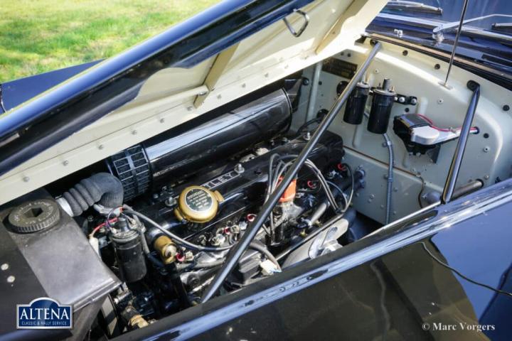 Bentley R Type Continental ‘by Racing Green Engineering’, bouwjaar chassis 1953. Chassisnummer: B40UM, motornummer: B123U, carrosserienummer 00052. Kleur zwart gecombineerd met een bordeauxrood lederen interieur afgewerkt met donkerrood wollen tapijt. Deze majestueuze Bentley R Type Continental werd voltooid door Racing Green Engineering (Wales, VK) in 2015. Deze speciale Bentley R Type Continental is gebaseerd op een Bentley R-type chassis en de mechanische componenten hiervan uit 1953. Het chassis, de motor, de versnellingsbak en alle andere originele componenten zijn volledig gerestaureerd en gereviseerd volgens de hoogste normen en tot in de perfectie afgewerkt. De aluminium carrosserie is met de hand vervaardigd door de vakmensen van Racing Green Engineering naar het voorbeeld van de originele vorm van het R Type Continental ontwerp van H.J. Mulliner. De originele R Type Continental werd gepresenteerd in 1952 en geproduceerd tot 1955. Slechts 208 exemplaren zijn oorspronkelijk gebouwd door Bentley. De R Type Continental herdefinieerde de naoorlogse Bentley en is een van de meest indrukwekkende auto’s ooit ontworpen. De Continental werd gebouwd met een strikt streefgewicht van 1750 kg: in 1950 bestond er geen band die een groter gewicht bij 185 km/u of meer kon dragen. De R Type Continental werd zeer geprezen door Autocar Magazine: “Welke memorabele auto-ervaringen men ook heeft gehad, dit was iets anders… deze Bentley is een modern vliegend tapijt dat grote afstanden overbrugt en de inzittenden bijna net zo fris aflevert als toen ze vertrokken.” Deze Bentley R Type Continental, naar perfectie gebouwd door Racing Green Engineering, heeft sinds zijn voltooiing slechts 2329 kilometer gereden. De auto verkeert nog steeds in als nieuwe concoursstaat! De 4566 cc R Type zescilindermotor loopt soepel en krachtig, en de volledig gesynchroniseerde R Type vierversnellingsbak schakelt perfect. Het interieur is bekleed en afgewerkt met het fijnste leer, wol en walnotenhout. Het houten dashboard en de andere van hout vervaardigde interieurdetails zijn ware kunstwerken. Deze auto heeft sinds de voltooiing één eigenaar gekend. Dit is uw kans om een fantastische replica te kopen van de meest gewilde vintage Bentley uit de naoorlogse periode. Deze exclusieve auto wordt geleverd met originele Bentley-documenten en een restauratierapport.
