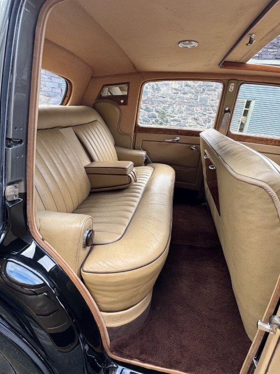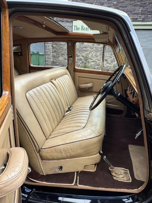 An R Type with a difference! The car has been upgraded to 4.9 litres, has a high ratio back axle and is equipped with P100 headlights, all of which enhance the car overall and make it stand out from the crowd visually, as well as adding to the already highly useable specification of these models. In lovely condition, with excellent paintwork in Mason’s black and grey, superb chrome plating, with original leather interior, accompanied by high quality carpets, headlining and woodwork, all in lovely order, and looking very smart. The underside is excellent, being clean, sound and well-protected, and includes a recent stainless steel exhaust system. Driving nicely, fitted with very well-suited Avon radial tyres & offered freshly MoT’d.