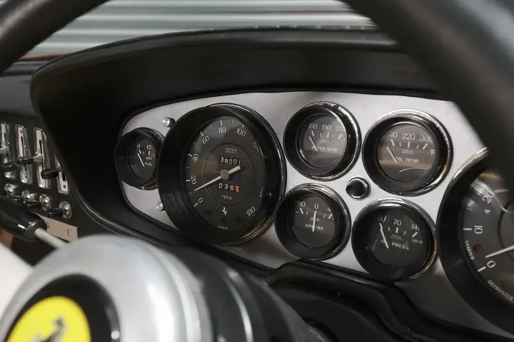 Featuring a 5-speed gearbox and a limited slip differential. The car sits upon independent double wishbone suspension on both the front and rear with the typical tubular shock absorbers, coil springs and anti-roll bars which provided superb stability in all driving situations. Early Daytona’s featured fixed headlights behind an acrylic headlight cover, also known as a ‘Plexiglass’. However, due to US safety regulations banning the use of headlights behind glass, cars were then produced with retractable pop up twin headlights in 1971.