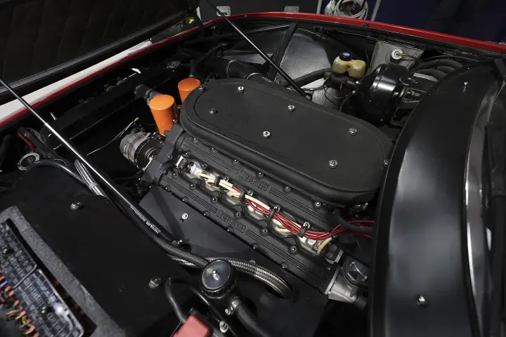 The Ferrari 365 GTB/4 ('365' denoting the engines displacement in cubic centimetres per cylinder and '4' denoting its number of overhead camshafts) featured a dry sump lubricated engine developed from the earlier Colombo V12, with a 60° bank angle used in the 275 GTB/4, now bored out 4,390cc with 6 Weber carburettors. The car’s engine produced an impressive 347 horsepower at 7,500 rpm and could achieve 0-60 mph in just 5.4 seconds and had a monstrous top speed of 174mph!