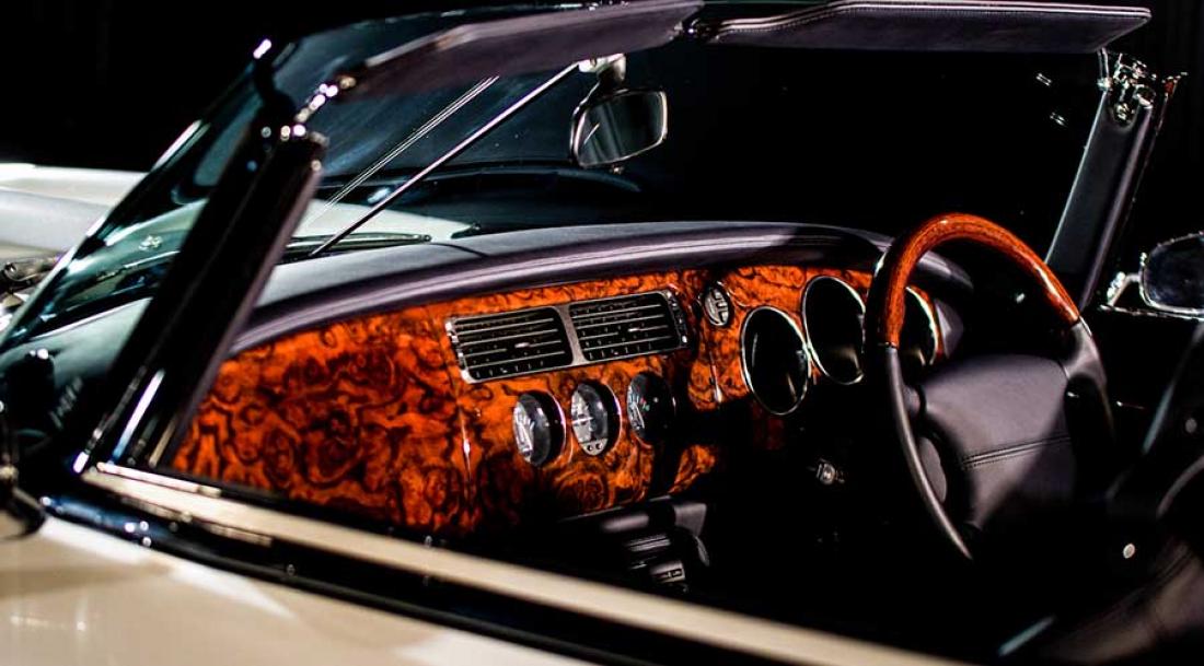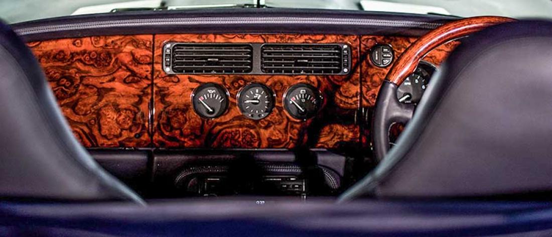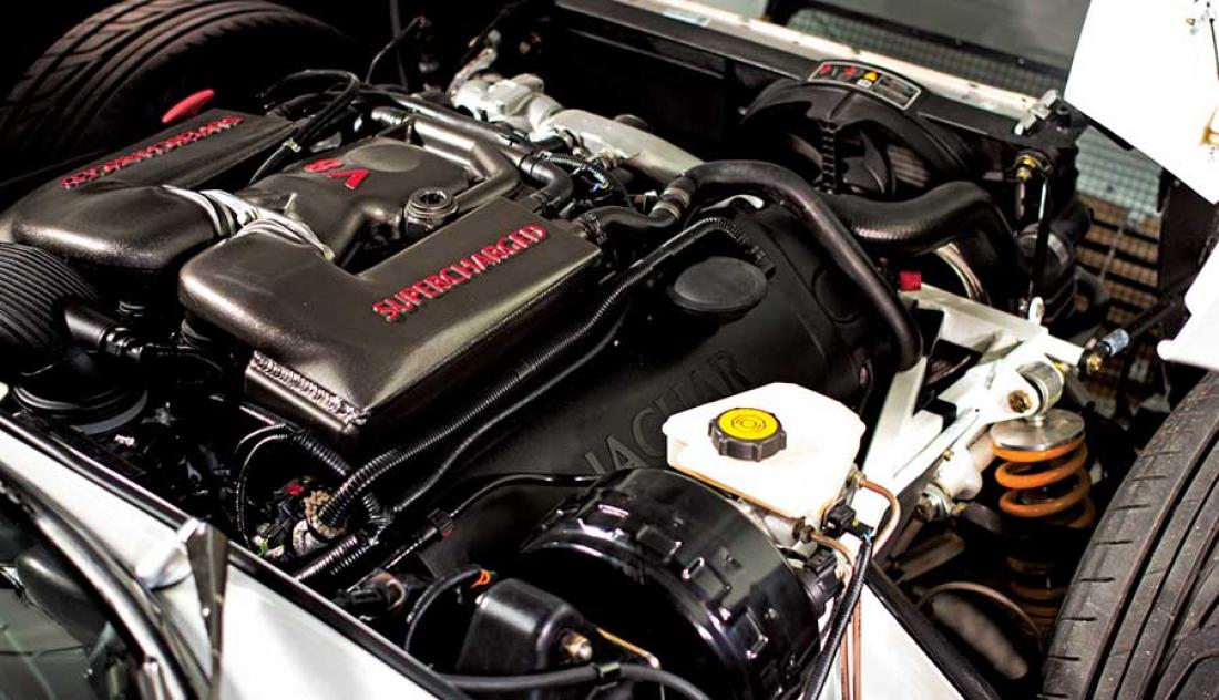 A new subframe was devised to house the XKR V8 and front suspension. The integration of the mechanical components has to be considered a remarkable engineering feat. Underneath the car is a work of art. The stainless-steel exhaust system, with its cross balance pipes, is of the highest order and everywhere there are signs of the closest attention to detail. But exchanging modern technology for old is more than fabricating new engine mounts and rerouting exhaust systems.
