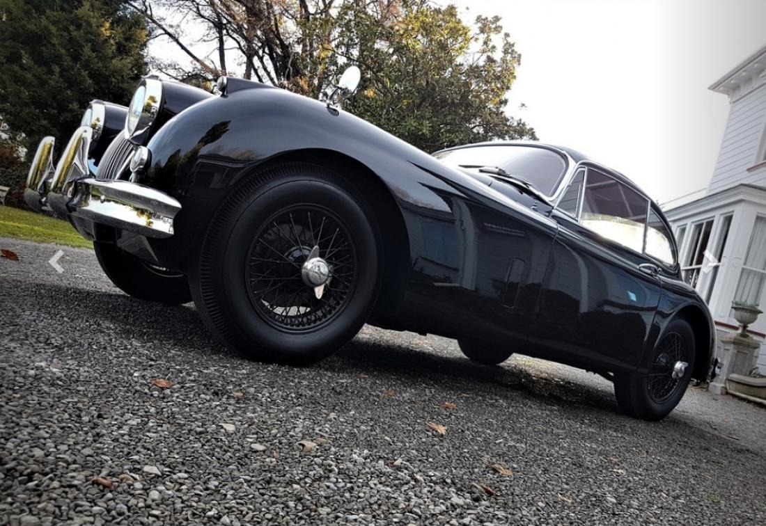 This XK 150 is equipped with five factory knock-off wire wheels, including the spare, and rides on period-correct Coker Classic blackwall bias tires.