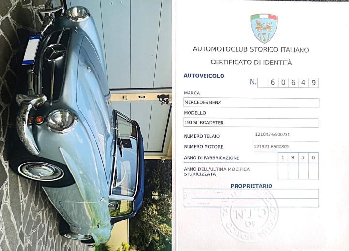 From the official factory documents, it can be seen that this car was produced at the beginning of 1956 and shipped on 27 February of the same year to the official Mercedes-Benz distributor in Los Angeles, USA. It has spent its entire life in the United States, with Oregon as its last state of registration before importation to Italy in 2013.