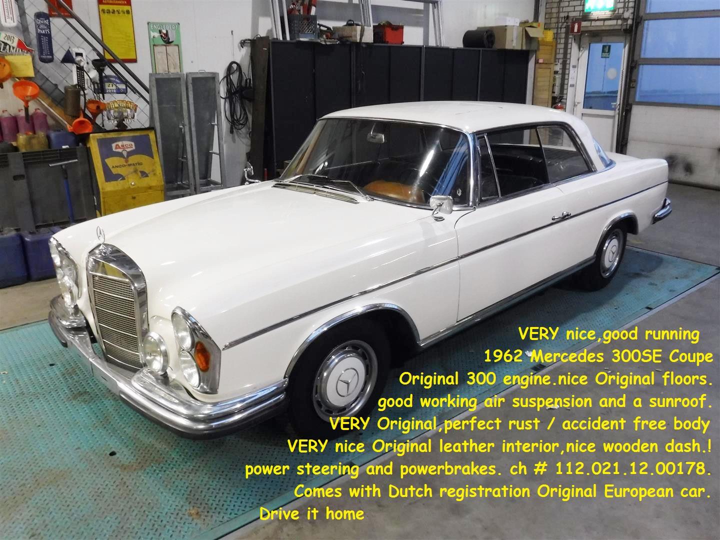 This stunning 1966 Mercedes-Benz 300SE Coupe is a rare classic, with only 2400 units of this model ever built! The car is in excellent condition, featuring original, solid floors, air suspension, and a sunroof for added driving comfort. The interior is fitted with luxurious leather upholstery and a beautiful wooden dashboard. The car is rust- and damage-free, and is equipped with power brakes and steering for a smooth driving experience. This is a European version of the Mercedes 300SE, and comes with Dutch registration. Big choice in REAL Classic Cars in the Stolze Collection ! From a project to perfect.