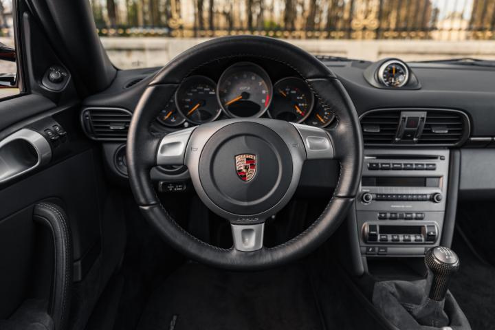 Under the bonnet, the 997 GT3 RS MK1 is powered by a 3.6-litre naturally aspirated flat-six developing 415 hp at 7,600 rpm and 405 Nm of torque at 5,500 rpm. Thanks to its contained weight of 1,375 kg, it reaches 60 mph in 4.2 seconds for a top speed of 193 mph. The six-speed manual gearbox and the sharp chassis with specific PASM shock absorbers offer formidable driving precision. Its dynamic behavior and its DNA from motorsport make it a reference among sports cars of the time, both on the road and on the track.