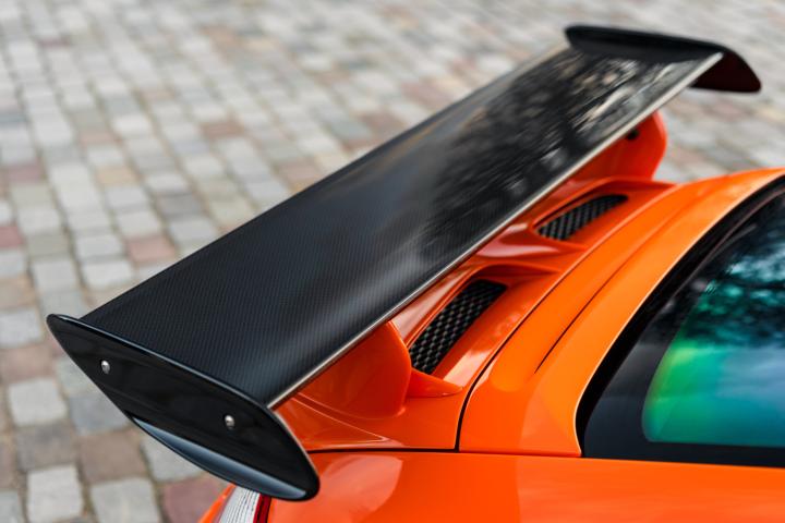 The exclusivity of the 997 GT3 RS is based on intensive weight reduction and specific distinctive elements. It adopts a wider chassis for better stability and also benefits from lightweight materials, including a carbon bonnet and spoiler, as well as a polycarbonate rear window. Its iconic Orange colour with black stripes or vice versa, as well as its lightweight forged alloy wheels, reinforce its aggressive look. Inside, the atmosphere is resolutely sporty with bucket seats, a partial roll cage and optional harnesses.
