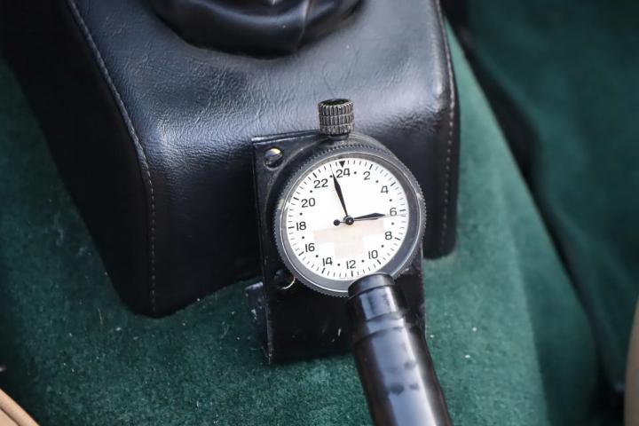The interior has also been renewed and is therefore in excellent condition. The beige upholstery is finished in beige (imitation leather), and the dashboard is beautifully trimmed with wood. The upgraded seats feature headrests. The floor is covered with elegant green carpeting. The soft top can be stored under a tonneau cover. A wind deflector adds extra comfort while driving. The interior also includes a heater and a Philips radio player. The trunk is neat and, under the double floor, offers space for the spare wheel.