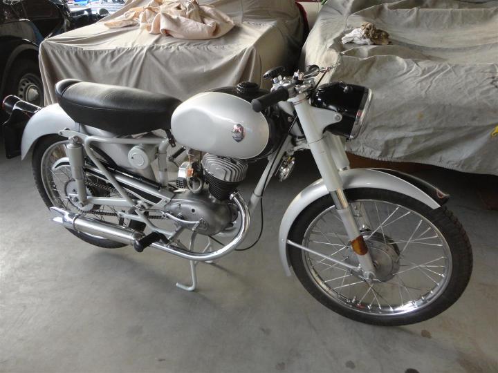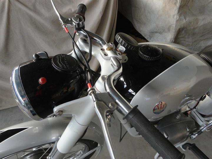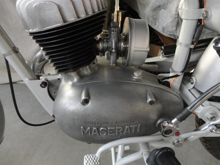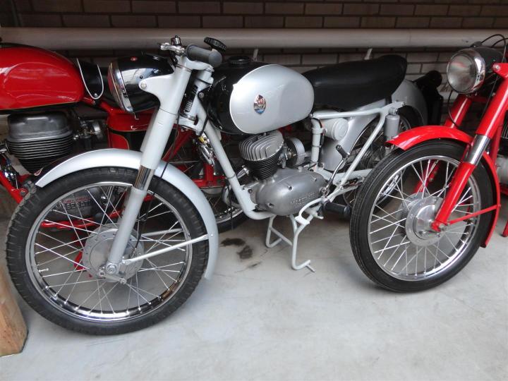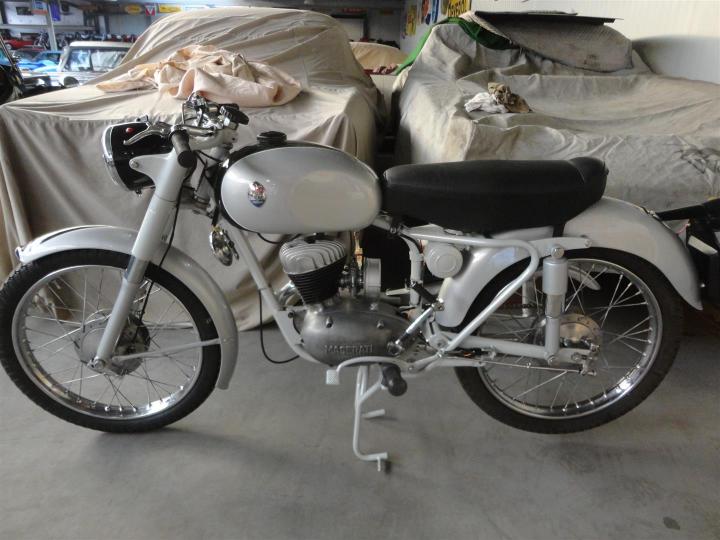 Perfect 100% gerestaureerd. Geheel originele 1958 Maserati 125 CC. Een prachtige, ZEER zeldzame Maserati motor. Slechts een klein aantal geproduceerd. Grote keus in motor- en bromfietsen in de Stolze Collectie!