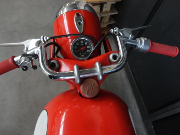 Perfect gerestaureerde en perfect rijdende MV Agusta 125CC uit 1960. Alsof die net uit de fabriek komt. Grote keus in motor- en bromfietsen in de Stolze Collectie!