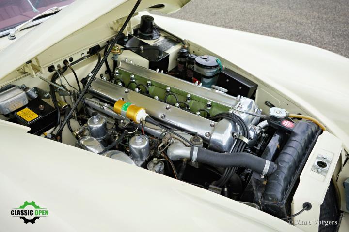 Uitgerust met de 2 SU carburateurs en altijd veel vermogen (254 pk) beschikbaar zoals je mag verwachten van een klassieke sportwagen.