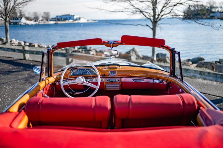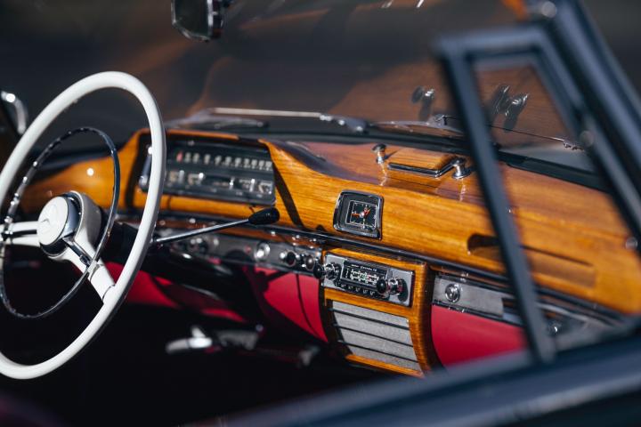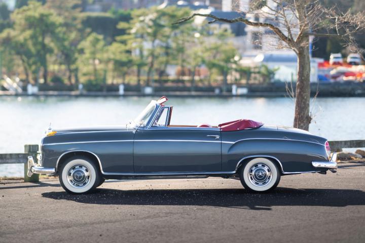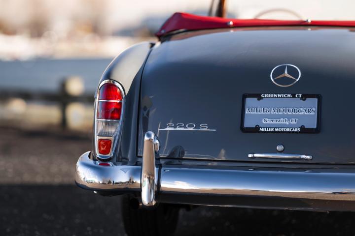 This beautiful specimen on offer was, according to the original receipt, picked up at the factory in Stuttgart on 12/06/1959 by the happy Californian owner. According to the fully completed and stamped service booklet that comes with the car, the owner has made a road trip through Europe, which can hardly be disappointing in a 220S. on 11/09/1959, according to custom's papers, the car was finally transported to California where the first owner maintained the car with a lot of love and care and remained faithful to it until 2017. Needless to say, California Classic cars are the best on the market, due to the dry and warm climate, making this 220S arguably the most excellent on the market. This 220S was finally registered by its second owner in Belgium, in 2017. Although this car was still in perfect condition, it underwent a complete ' nut and bolts' restoration to absolute competition condition, with an eye to the original configuration. For example, the bottom plates were retained. According to the data, the chassis and engine numbers are matching. which is very difficult to find today. In addition, this car is equipped with optional 4 seats, of which the seats are optionally adjustable, which makes this 220S Cabriolet extremely rare.