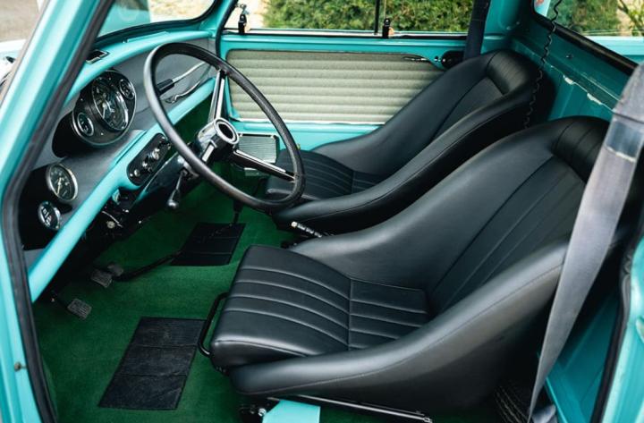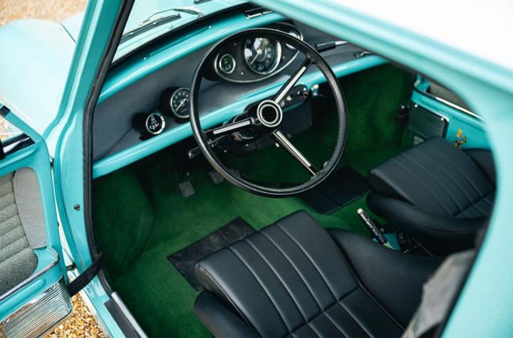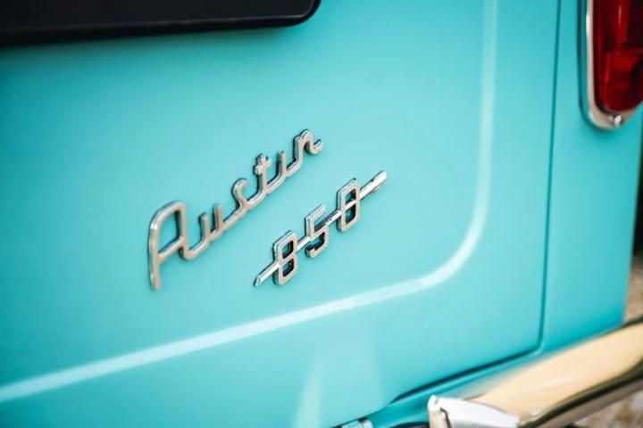Ce charmant Morris Mini Pick-Up de 1975, dans sa teinte Aquamarine, est dans une configuration absolument authentique.