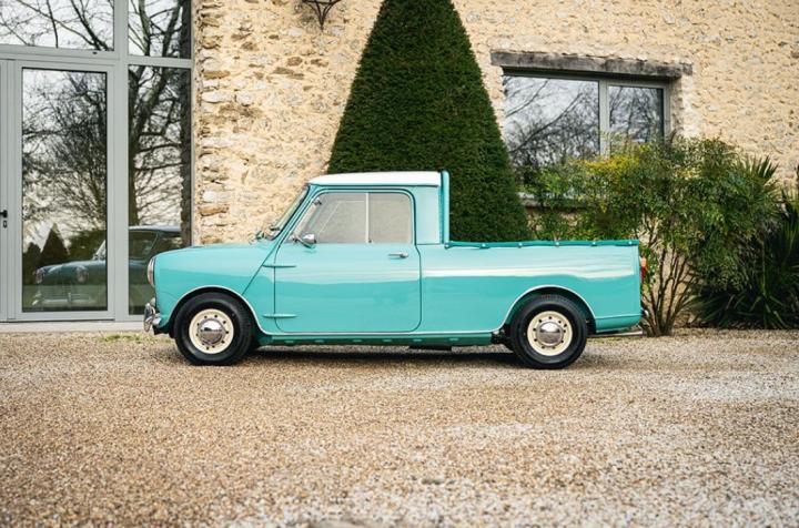 Dérivé directement de la plateforme originale de la Mini, ce modèle Pick-up conserve le design caractéristique de la marque, avec ses lignes arrondies et son format compact, tout en étant spécifiquement conçu pour transporter des charges. Contrairement au Mini Van, il possède une benne arrière intégrée dès sa fabrication, lui conférant une vocation utilitaire clairement affirmée.
