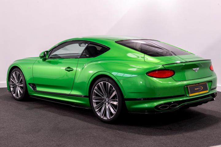 2021, Bentley Continental GT Speed 6.0W12 AWD, Finished in Apple green metallic with contrasting diamond Quilted Alcantara and hide, Showing just 20996 miles from new, This incredible car comes highly specified including - Touring specification, Continental Blackline Specification, Front seat comfort specification, LED Welcome lamps, 22" Speed Alloy wheels with dark tint, Adjustable drive modes, Heated folding door mirrors with memory function, Night Vision, Perforated, Heated, Climate, massage seats with memory function in Quilted Alcantara/Hide and Bentley crest on headrests, Quilted door cards with aluminium tint and contrast stitching, Alcantara headlining, Deep pile over mats, Rotating display, Touchscreen multi media and operating system with Satellite navigation, Bluetooth telephone preparation, music streaming, CD, Jukebox, Mood Lighting, Heated multi function steering wheel with electric adjustment, Adaptive cruise control, NAIM, Front and rear parking sensors with 360 Camera, Heads up display, Illuminated "Bentley" door sill, Soft Close doors, Noise insulated dual glazed windows, Rear privacy glass, Blindspot monitoring, Intelligent coasting, Electric rear spoiler in Carbon, and a whole host of other features