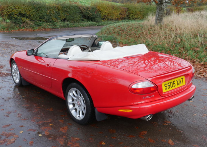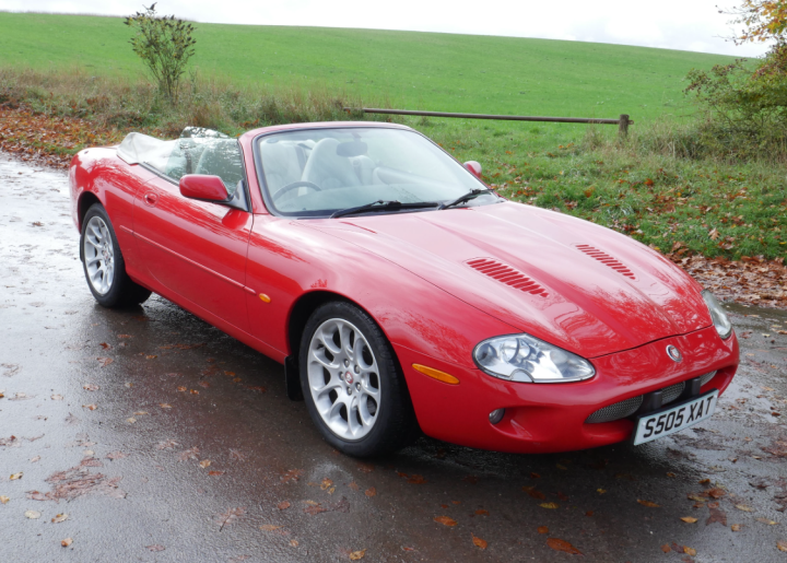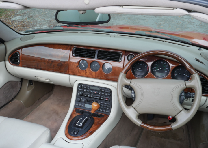 Superb in red with beige leather interior, just over 80,000 miles on odometer backed up by lots of old MOTs, 14 service stamps plus plenty of history, recent work to air conditioning, new MOT with no advisories, excellent body, paint, interior and roof, stainless exhaust, all the usual refinements, and roof cover. Comes with V5, complete Jaguar booklet pack including service history and MOT. XKR features mesh front grille, bonnet louvres, boot spoiler, 18" alloys, Eaton supercharger, 0 to 60 in under 6 seconds..