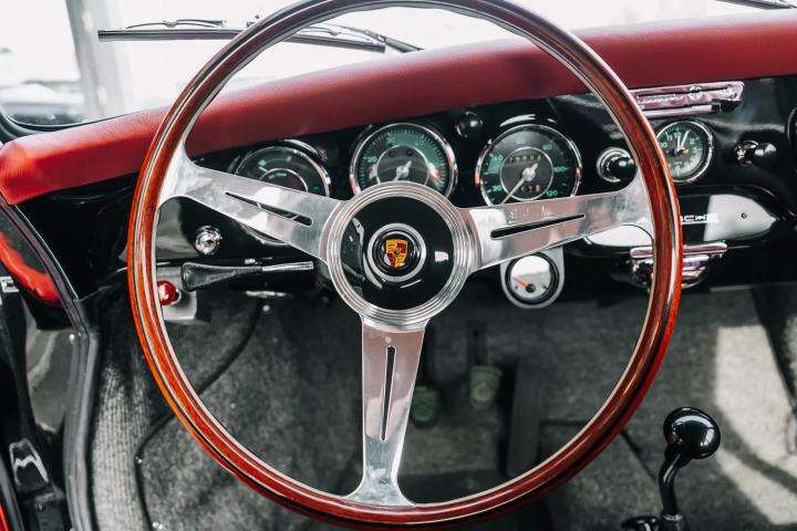 The 1962 Porsche 356 S is a timeless embodiment of vintage motoring, representing the pinnacle of Porsche’s early design and engineering excellence. This particular model, originally registered in California in July 1962, boasts a rich and well-documented history spanning over five decades. It remained in the hands of just four devoted owners during its 52-year stay in California, which is a testament to the car’s desirability and cherished status. In 2014, it was imported back to Europe and underwent a comprehensive, concours-standard restoration. Although the restoration specialist behind the work is not specified, the quality of craftsmanship is evident in every detail of the vehicle. Finished in an elegant black exterior and paired with a striking red leather interior, this Porsche 356 S exudes classic sophistication. It was registered with the UK's DVLA in May 2016 and currently displays 75,831 miles on the odometer—an impressive figure that underscores its history while still leaving plenty of life for its next custodian.