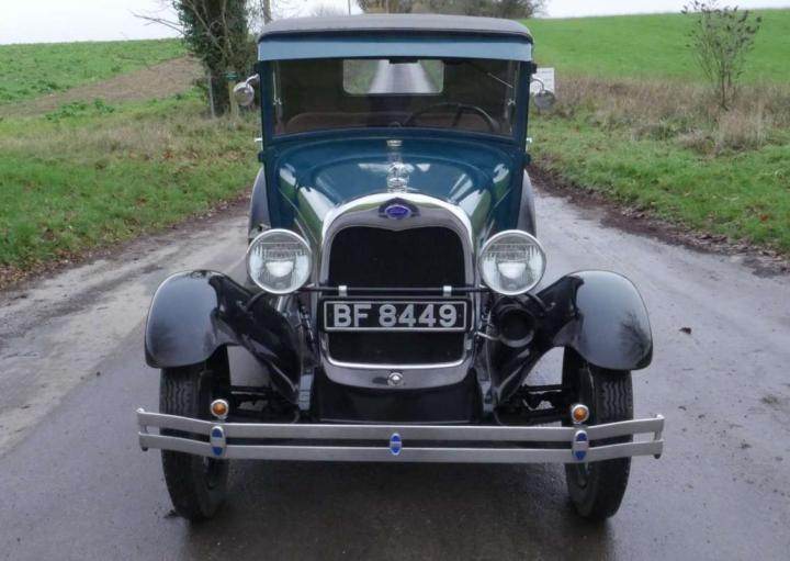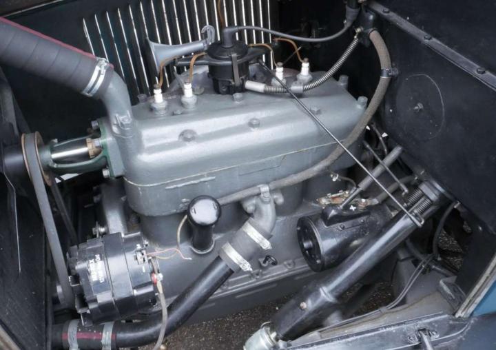 Lovely in blue and black, excellent body, paint and chrome, very tidy engine bay, lovely refurbished cloth interior, rubber floor mat, starts easily, stops and drives very well. Was imported from the US in 2017 where it belonged to the ex-resident of the AACA (Antique Automobile Club of America), restored in USA including engine re-build, radiator, hoses and battery all look newish, good tyres, flashing indicators, recent ignition components and rebuilt petrol gauge. Seen service with a film hire company, comes with V5, Instruction Book, wiring diagram, vintage petrol can, brass fire extinguisher and a few tools. Great fun.