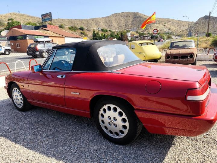 Se vende Alfa Romeo Spider Serie 4 Red Spider del año 1991, un clásico en estado excepcional y prácticamente nuevo. Luce su elegante color original Rosso Alfa, con capota, pintura y neumáticos originales en excelente conservación. Cuenta con aceite y filtros recién cambiados, por lo que está listo para disfrutar al instante, únicamente pendiente de pasar la ITV. Este Spider combina el encanto atemporal del diseño italiano con el placer de conducir un descapotable auténtico, siendo una pieza ideal tanto para coleccionistas como para quienes buscan un coche único para escapadas y eventos.
