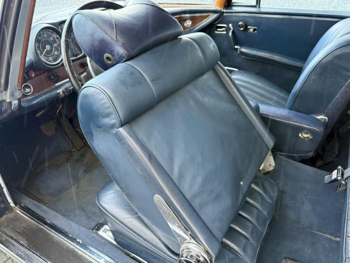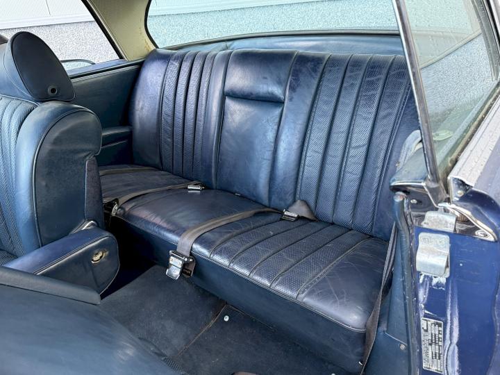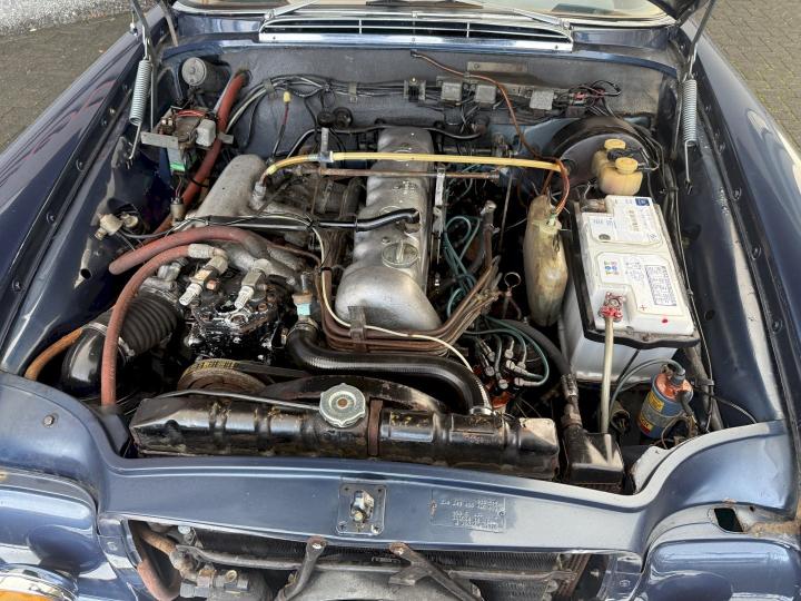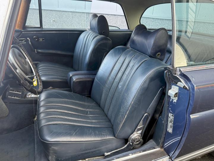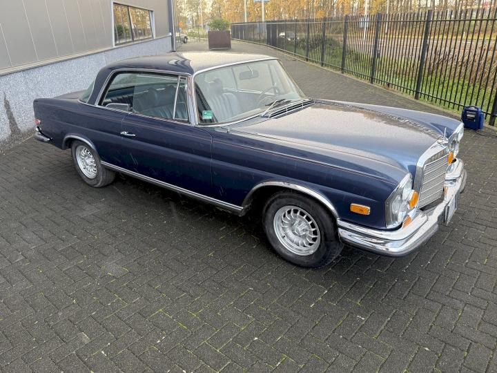 Het betreft een Matching nummers Lage grille (Flachkühler) 280SE Coupe, alleen geproduceerd in 1970/71, af fabriek geleverd in lichtblauw metallic 906G en in het verleden gewijzigd in Donkerblauw metallic 387H, het lakwerk is redelijk en hoeft niet vervangen te worden, een auto die goed loopt en rijdt, betreft een automatic transmissie met de handle op de tunnel en niet aan de het stuur, het leder interieur is best vrij aardig, zo ook tapijt en binnen hemel, voorzien van de originele Becker radio, qua body in zoverre ik kan zien geen schade gehad in het verleden, voorzien van het juiste type bumpers, de kofferbodem hoeken zijn in het verleden vervangen, de hoofd kofferbodem, achter tussen-paneel en achter schermen zijn nog de eerste en origineel, aan de onderzijde kan ie wat verbeteringen gebruiken, niet zo zeer de hoofdbodem delen, te denken is dan aan de voorste krik steunen, links voor de binnen scherm versteviging (banaan genoemd), en l + R een liggend gedeelte net voor het achterwiel.