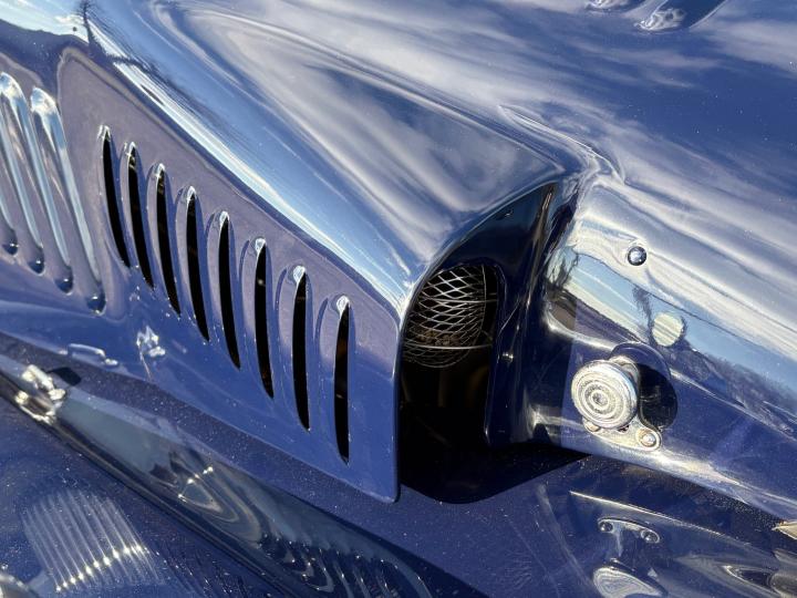 Deze Morgan heeft nog wel zijn originele motor (matching-numbers) en er staat nu 90.000 miles op de teller.